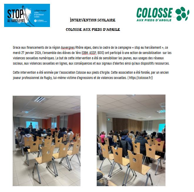 INTERVENTION SCOLAIRE COLOSSE AUX PIEDS D’ARGILE